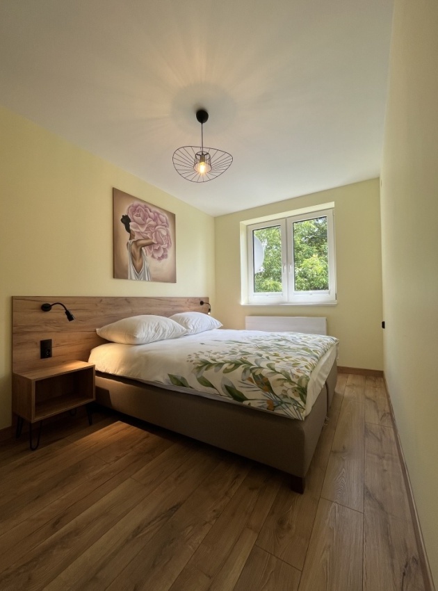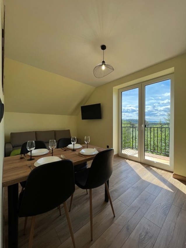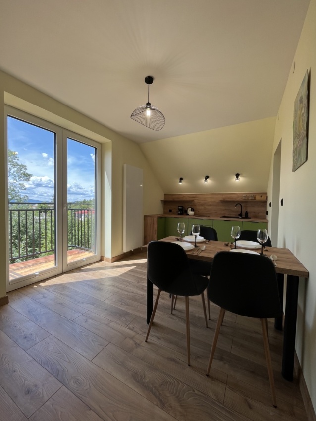 ładnej, spokojnej dzielnicy Rabki–Zdrój. To przytulne miejsce gdzie można odczuć pozytywn± energię i odpocz±ć w cieniu drzew, a z balkonu podziwiać urokliwy krajobraz otaczaj±cych gór i niepowtarzalne zachody Słońca.