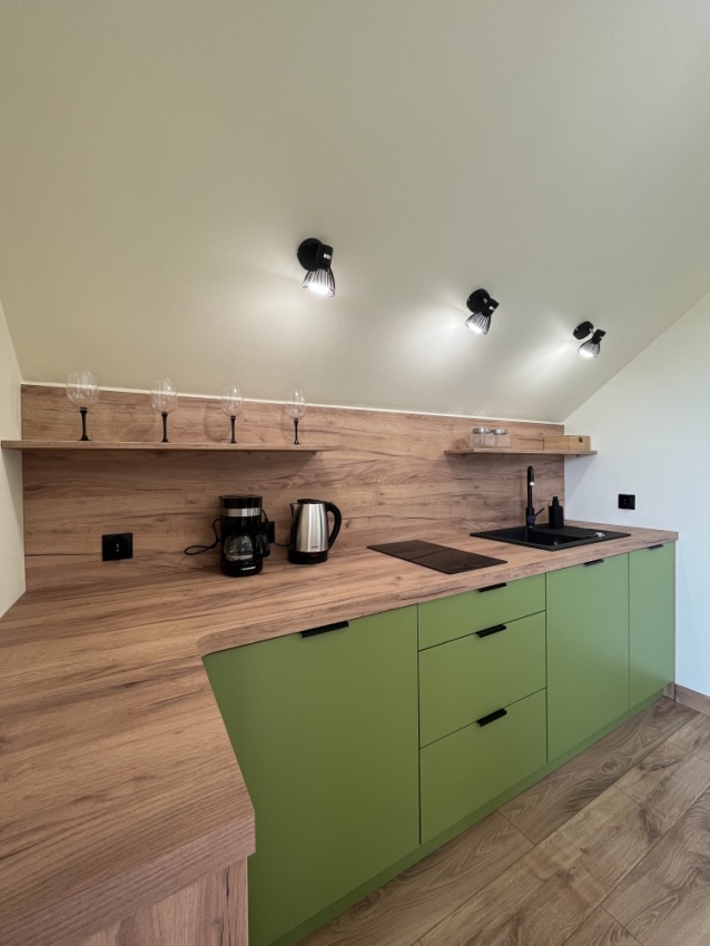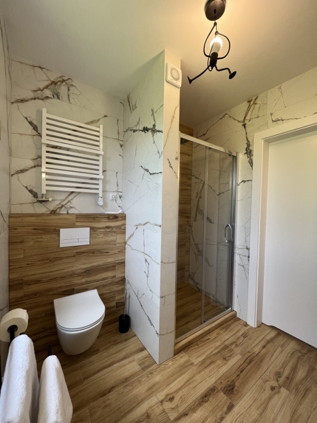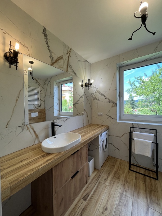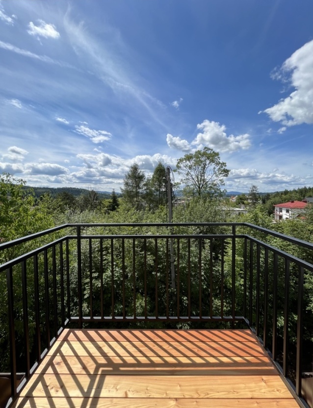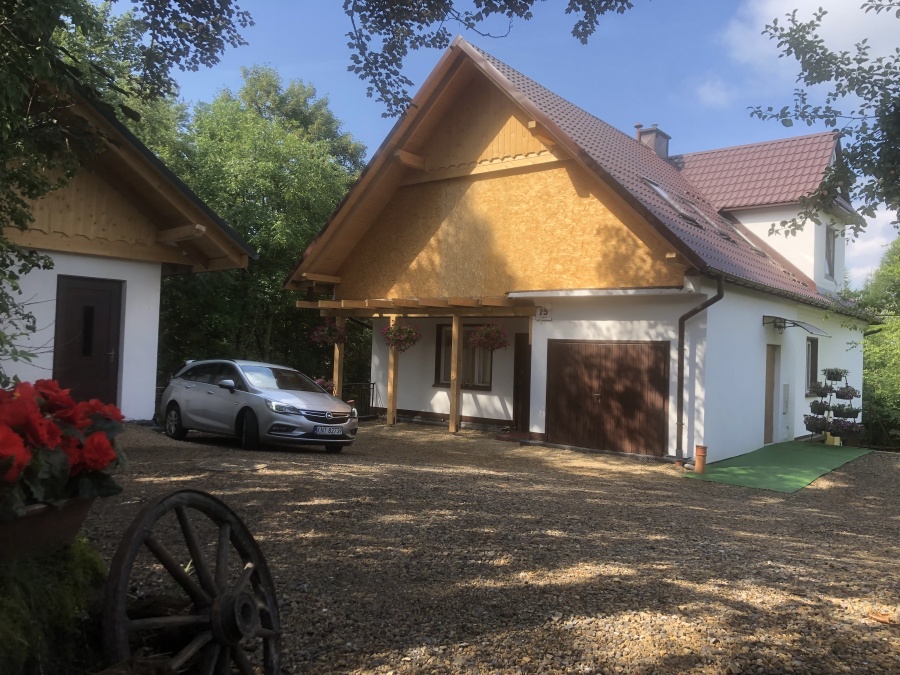 ładnej, spokojnej dzielnicy Rabki–Zdrój. To przytulne miejsce gdzie można odczuć pozytywn± energię i odpocz±ć w cieniu drzew, a z balkonu podziwiać urokliwy krajobraz otaczaj±cych gór i niepowtarzalne zachody Słońca.
